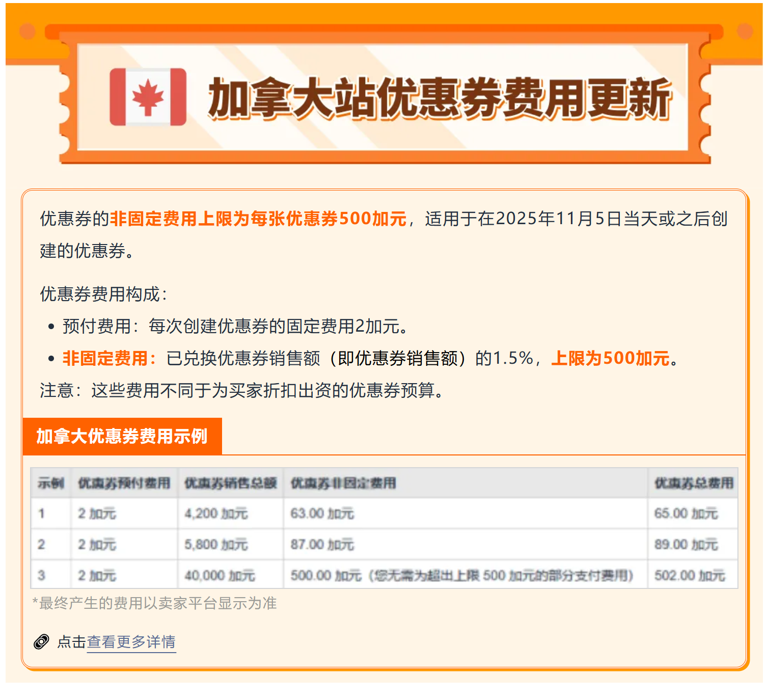 - 非固定费用:已兑换优惠券销售额(即优惠券销售额)的2.5%,上限为2,000美元。